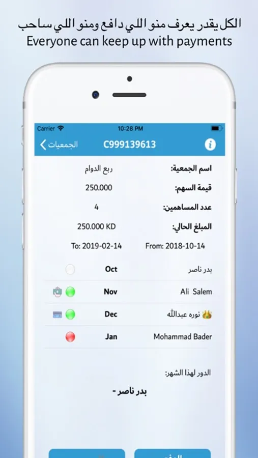 - تتبع عمليات الدفع الخاصة بالمساهمين من قبلهم حيث يمكنهم معرفة من قام بالدفع ومن لم يدفع.
