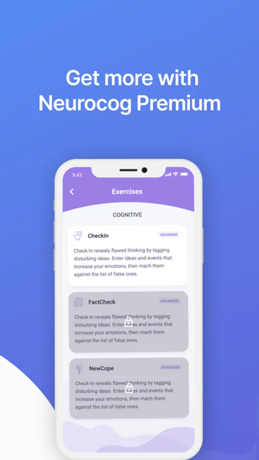 The Neurocog App is an excellent tool for improving your mental health which allows you to track your emotions using the Emotion Log before and after the event. See the progress over time with simple and easy-to-use Emotion Trends and do exercises to increase your neurocognitive capacity and stress management.