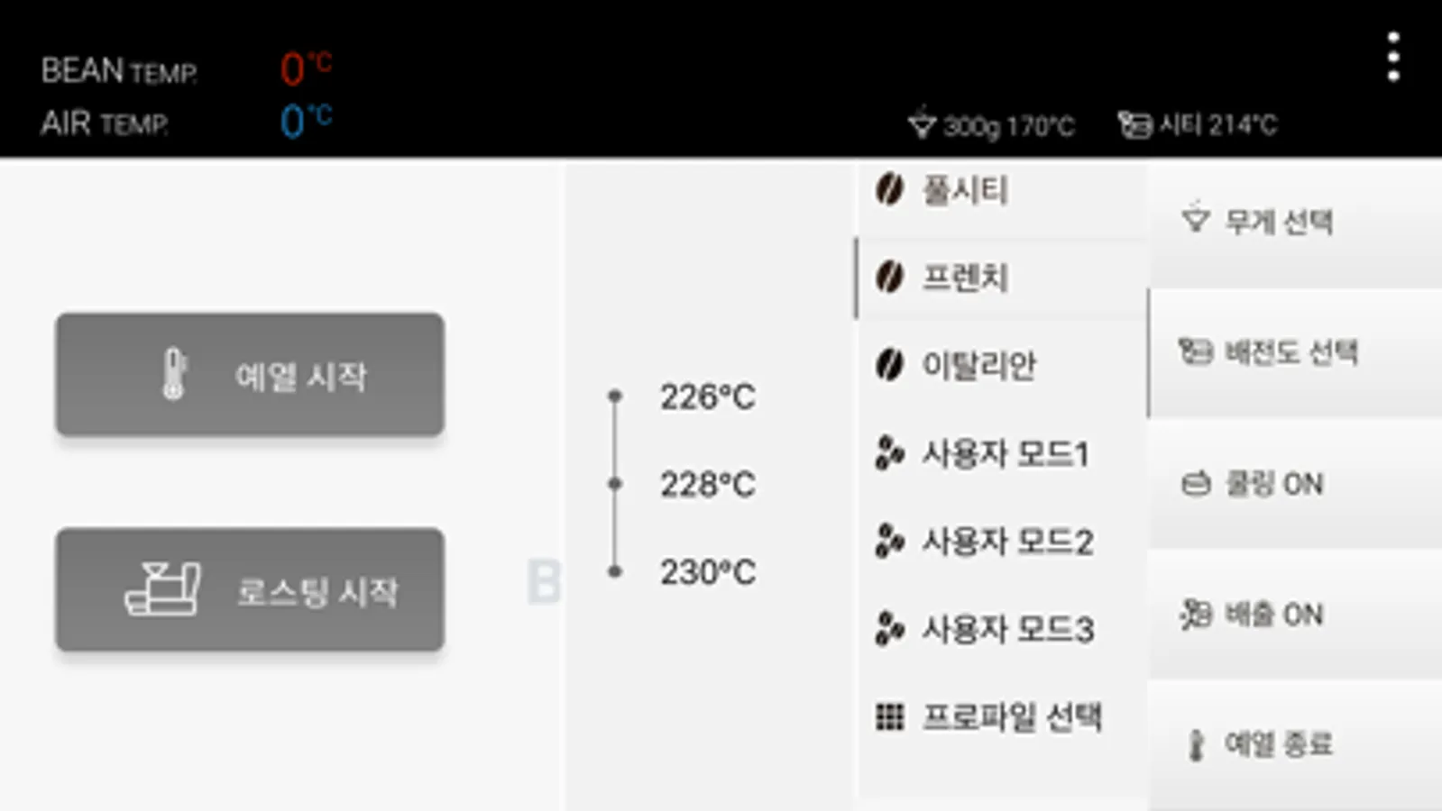 1. 투입된 원두량에 따라 선택한 적정온도(선택한 배전도)로 로스팅이 가능
