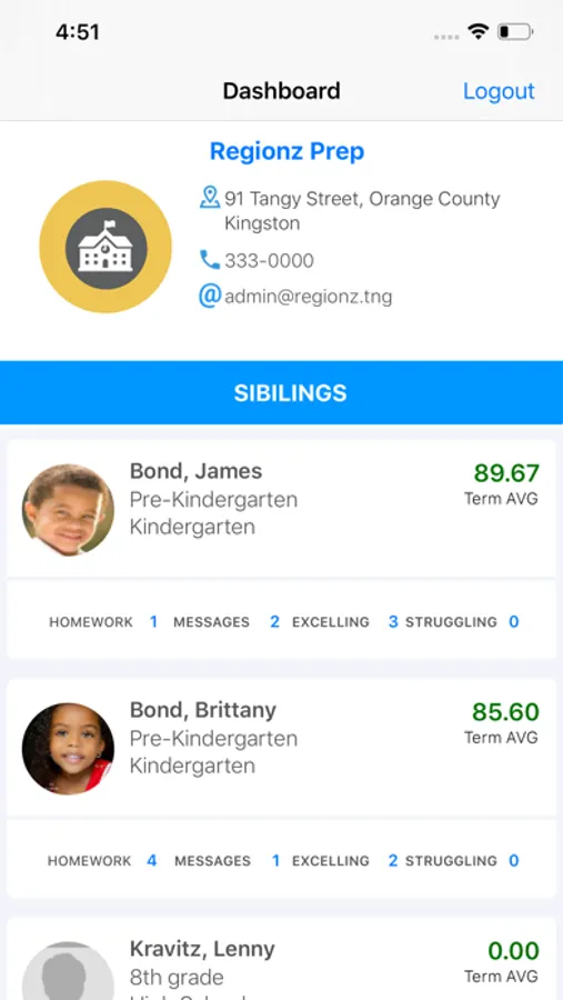 designed for Jamaican Kinder/Preparatory and High Schools. The mobile app was created to provide academic visibility to parents on their child's performance.