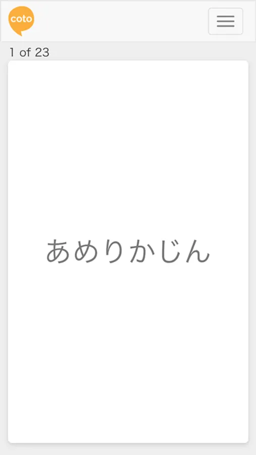 All users can access flash cards of the vocabularies from Coto's original text book "Nihongo Fun and Easy". Students of Coto Japanese Academy and Coto Japanese Club can access exclusive contents from another text book "Nihongo Fun and Easy 2" as well as Kanjis. And can create own original decks also.