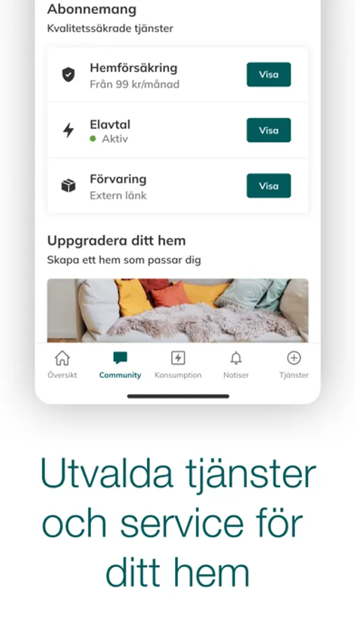 - Boendetjänster som hemförsäkring, förvaring, ROT och RUT