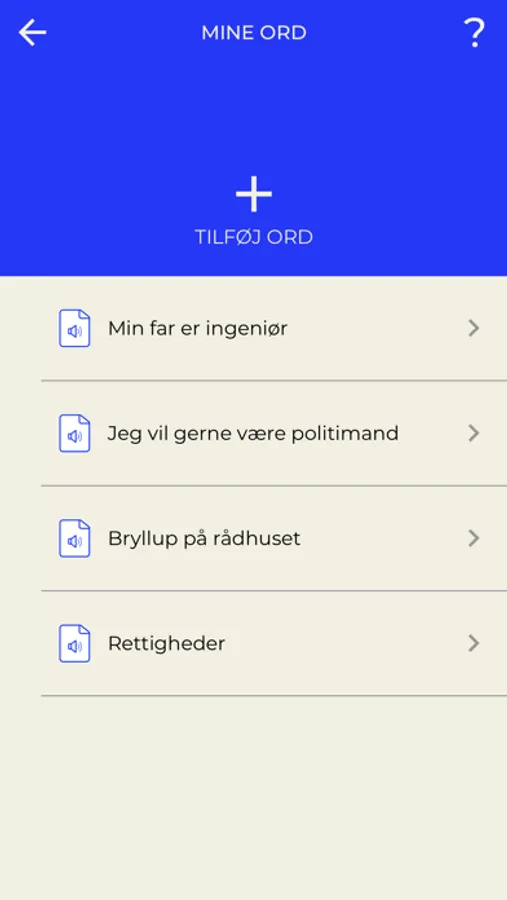 Og ikke mindst kan en underviser tilføje lister med sætninger og ord, der kan deles og hentes af elever/studerende.