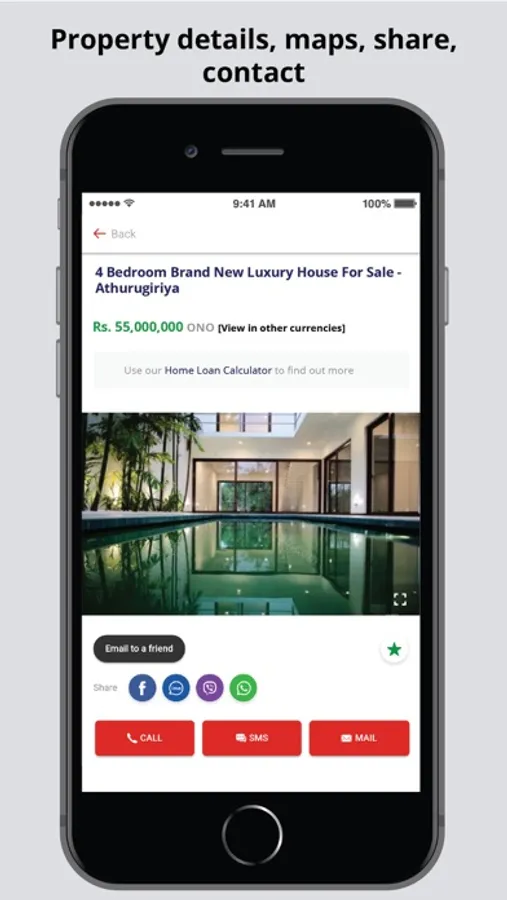 Directly share with your contacts - Share properties directly with friends and family via Facebook, Whatsapp, Viber and imo.