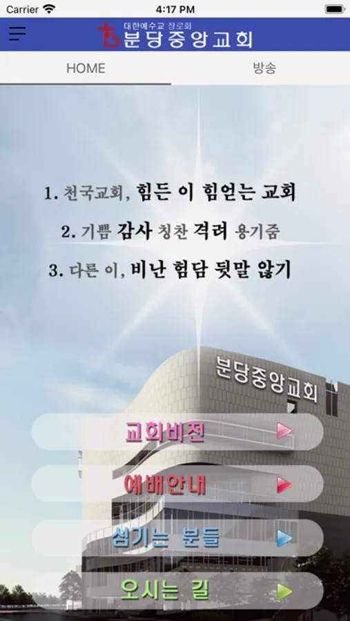 분당중앙교회는 분당신도시 개발과 함께 세워진 분당의 1호 교회입니다.