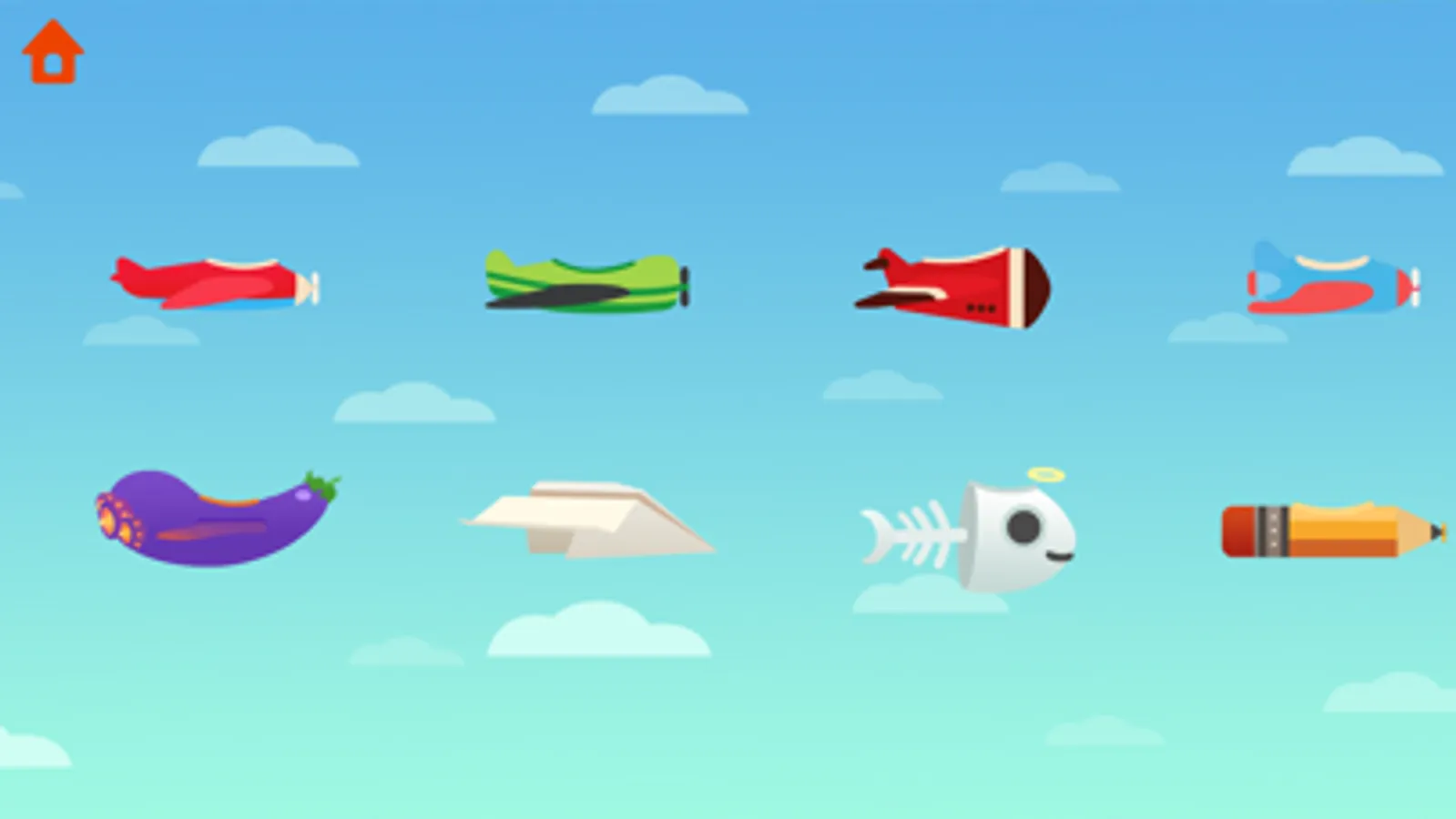 • Navigate 14 unique and well-designed planes, including the eggplant-shaped plane, paper airplane, fishbone plane and more