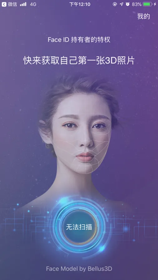 《相貌解析》集成了美国Bellus3D公司的3D人脸拍照技术。 如果您的设备上拥有 Face ID , 那么可以拍摄出 1:1 的3D照片, 可以进行更精确的解析, 也可以进行分享.