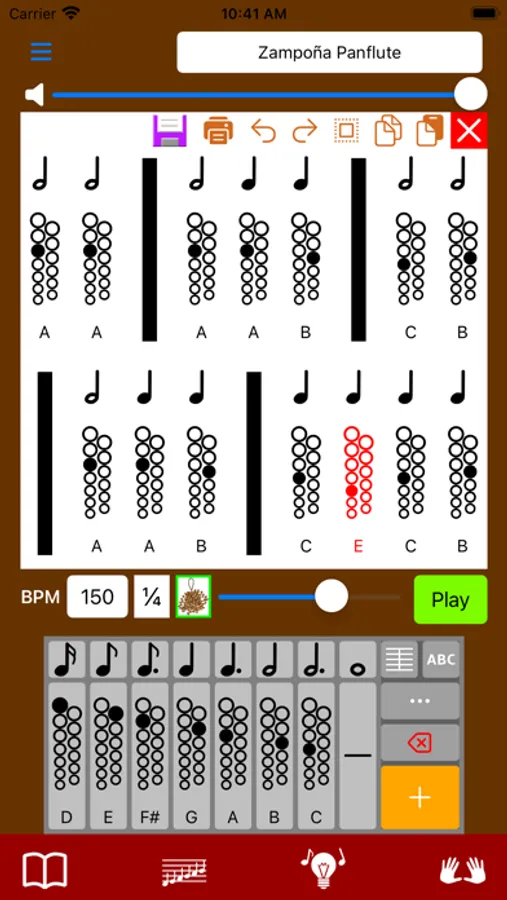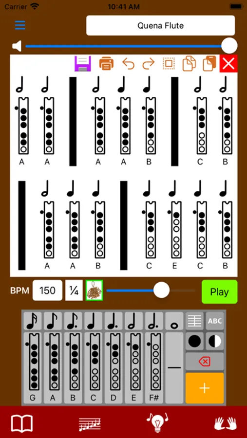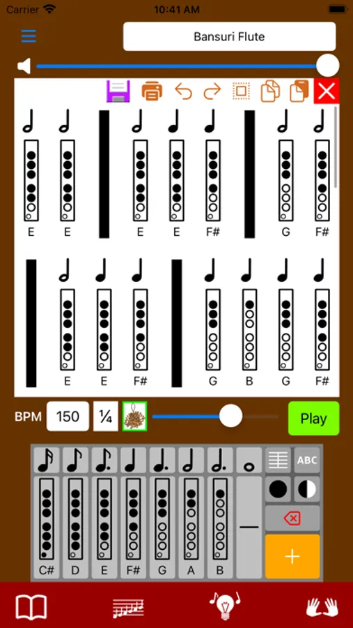 An interesting feature of the app is that you can easily convert the fingering of your written song from one flute to another flute as much as it is convertible. In order to do that, write your song for one flute and simply open it for another flute.