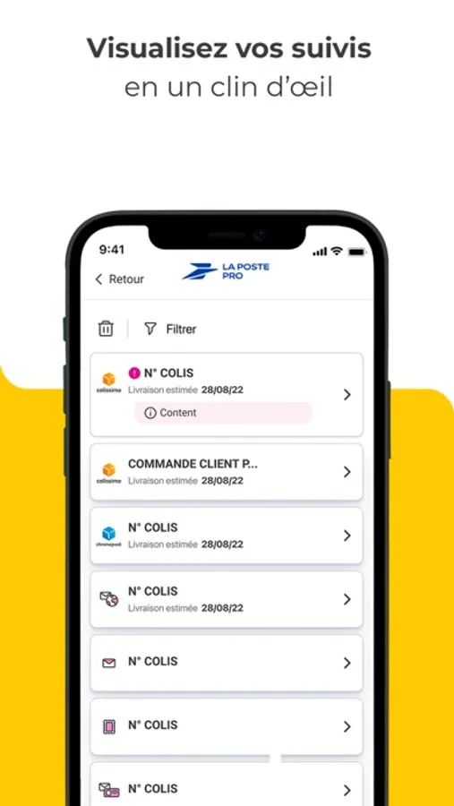 Accédez en direct au suivi de colis (Colissimo et Chronopost) et de courriers recommandés sur votre Smartphone.