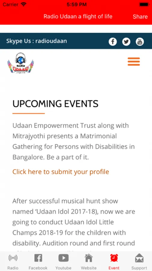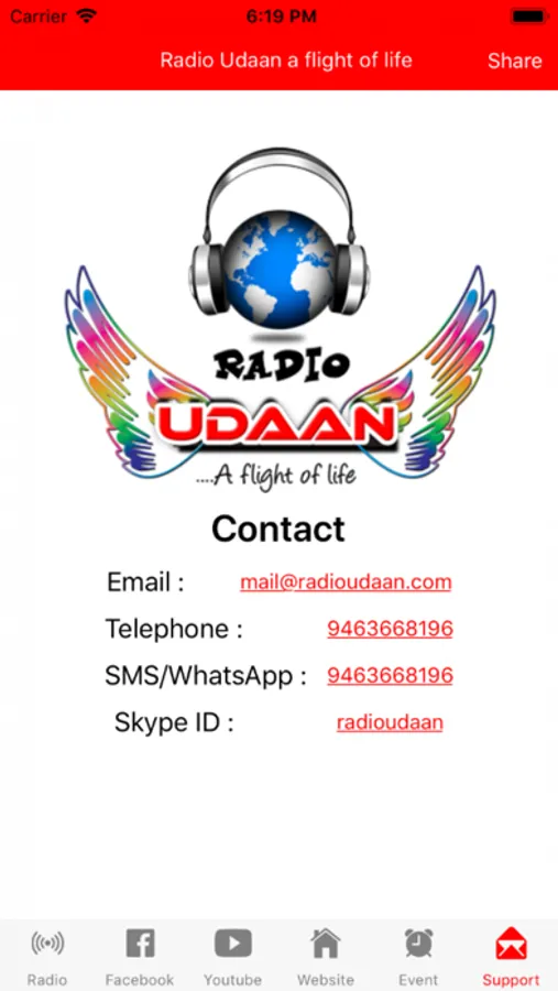 In this app you can play the radio live stream, view latest events, contact details, as well as browse various programs directly through Radio udaan's Youtube channel.