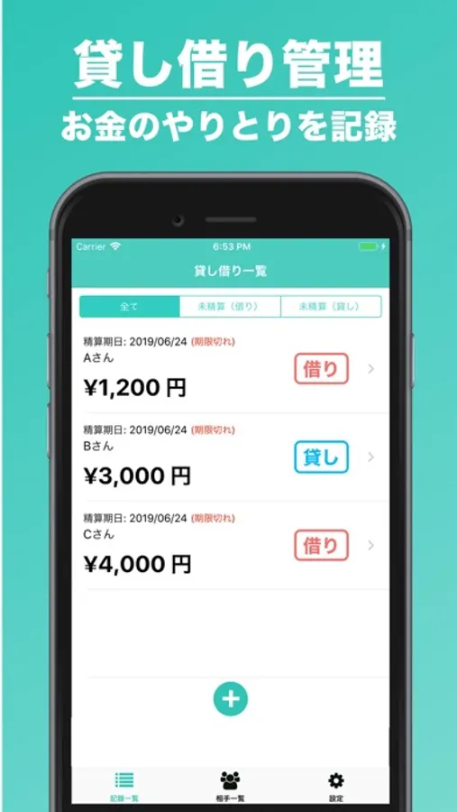 貸し借り管理は、忘れがちなお金の貸し借りや立て替えを簡単に記録するアプリです。