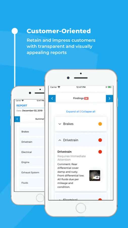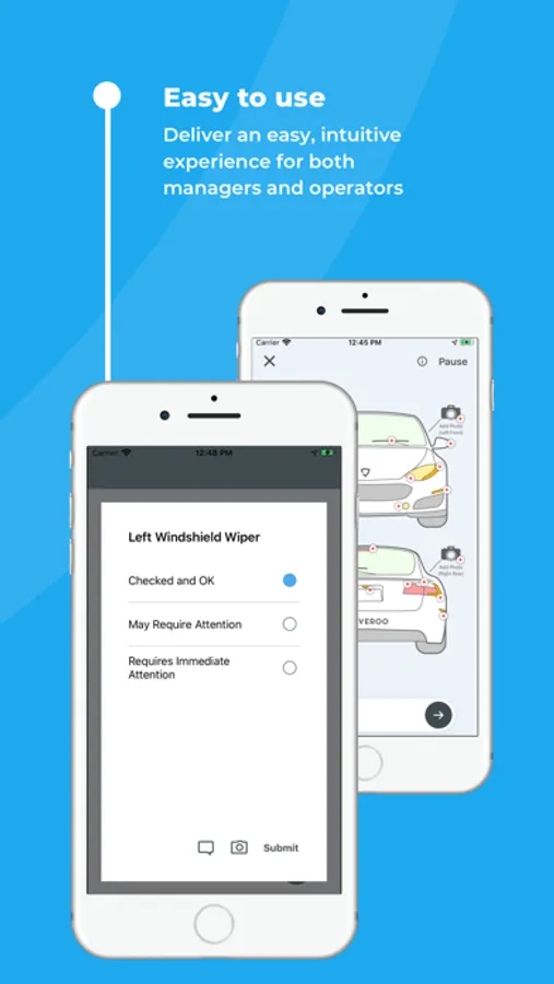 Driveroo Inspector is a powerful easy to use digital inspection software, available on any mobile phone or tablet. Driveroo Inspector streamlines the inspection process through visual input technology and presents inspection results in an easy to share comprehensive report, supported with pictures and recommendations.