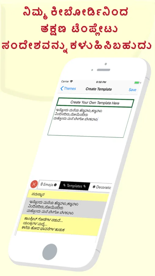Now finally open any of the WhatsApp,Facebook,Email,Notes,Twitter, sms app, and long press the Globe icon from the default keyboard, now choose the Namma Kannada Keyboard Option.