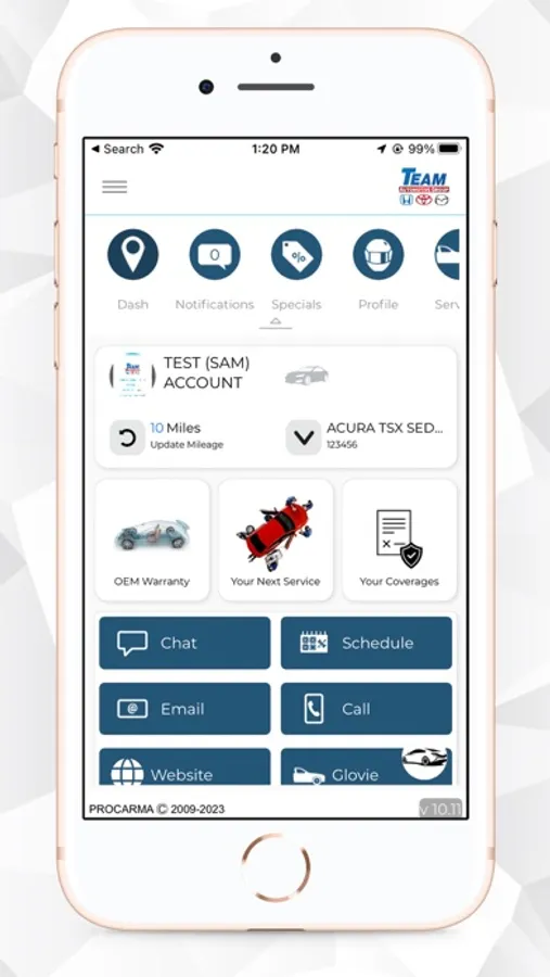 The Team Auto Care app provides a portal for users to:
