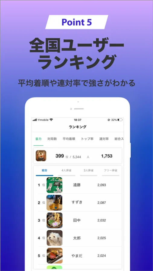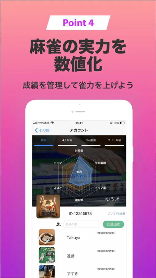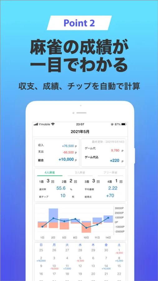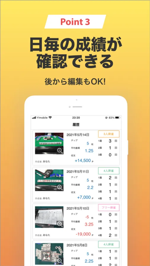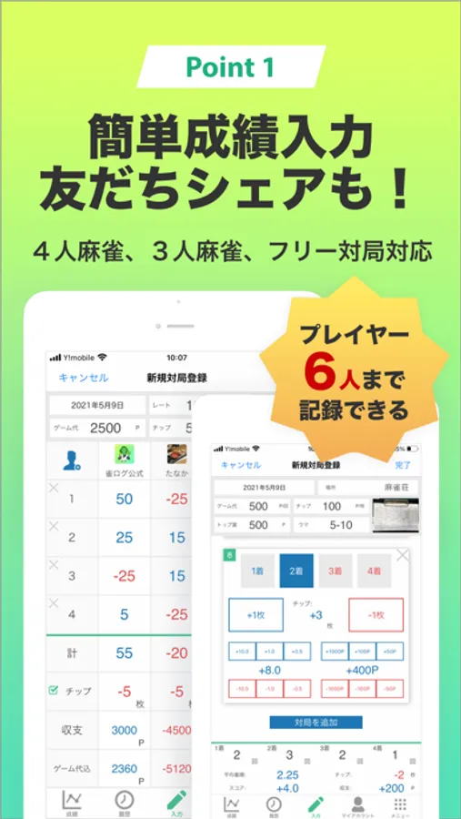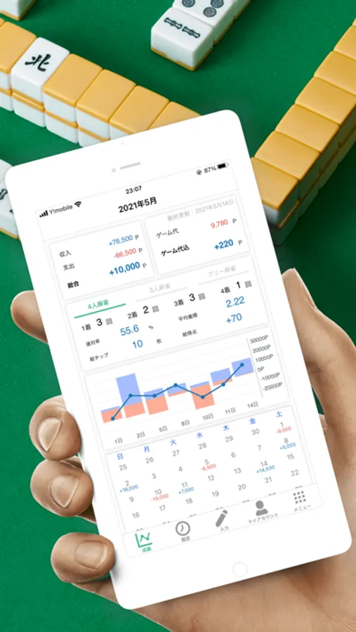 "JongLog" is a book application that allows you to register and confirm the record of mahjong's performance / balance