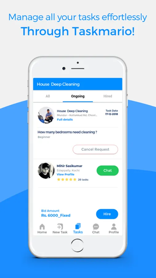 You can instantly book home services through the Taskmario mobile app or schedule the task for later.