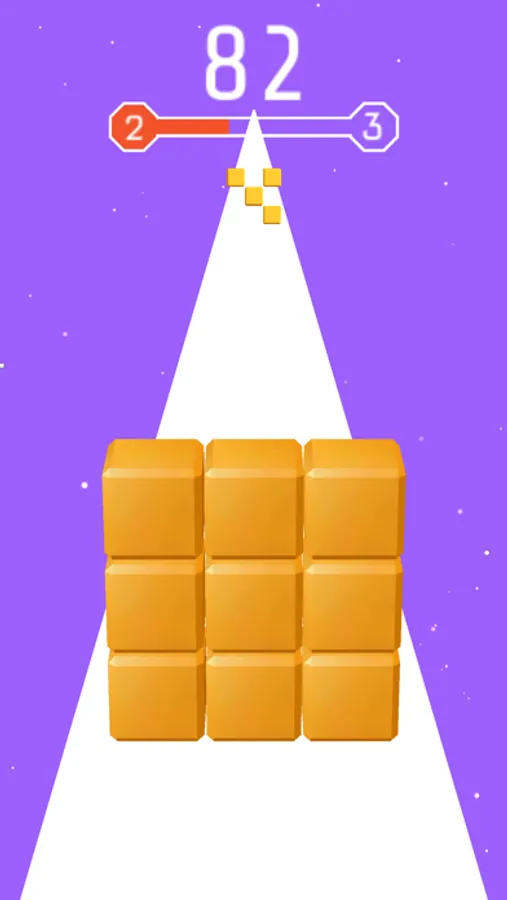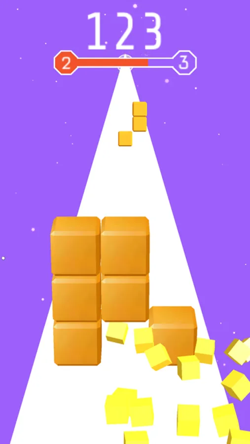 Tap on the cubes and destroy them to build the same shape as the approaching wall