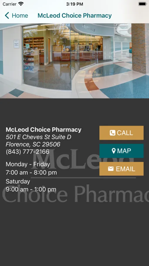 McLeod Choice Pharmacy makes refilling your prescriptions convenient and quick with the use of this app on your device.