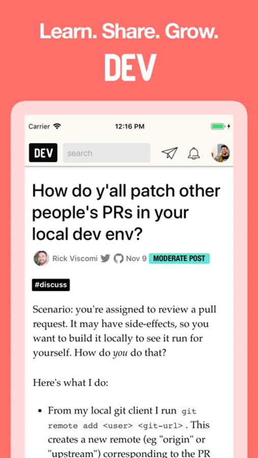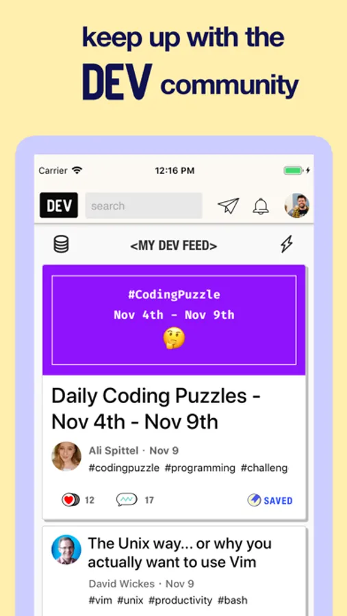 Our iOS app allows you to experience all the benefits of dev.to with a lightweight native experience.