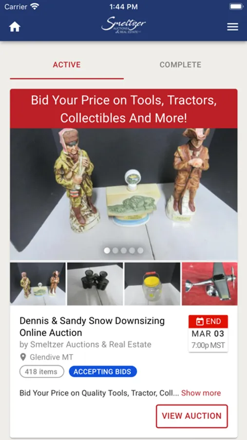 Welcome to the Smeltzer Auctions & Real Estate mobile bidding app! This dynamic app allows you to (1) stay informed about our upcoming auctions; (2) view properties that interest you; (3) get notifications when you’ve been outbid; (4) bid no matter where you are located (or set and forget your maximum bid to let our platform automatically bid the lowest possible winning bid for you). This is the go-to-source for up-to-the-minute information on all of our auctions and listings.
