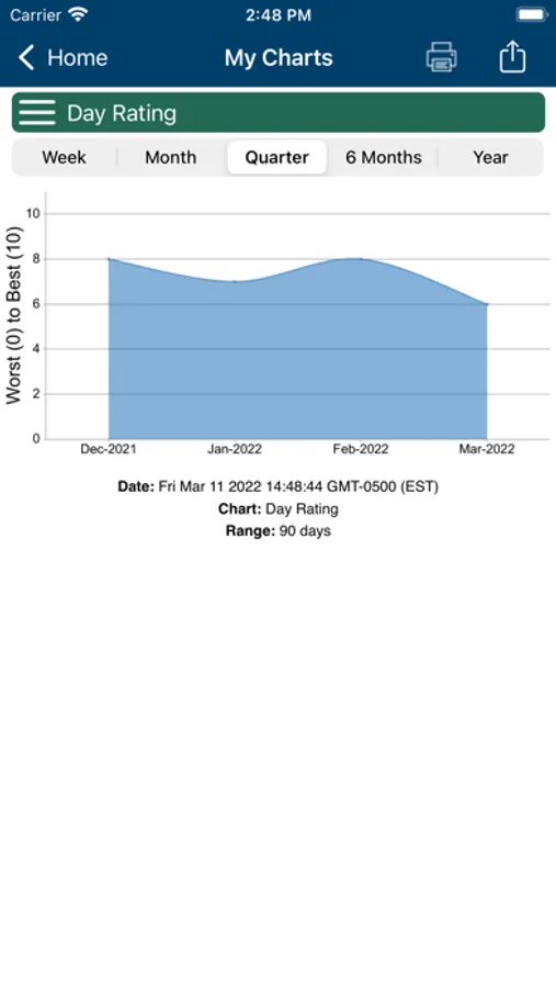 • Track your progress and symptoms by filling in the daily journal with its sliders and buttons and watch your data transform into easy-to-read charts