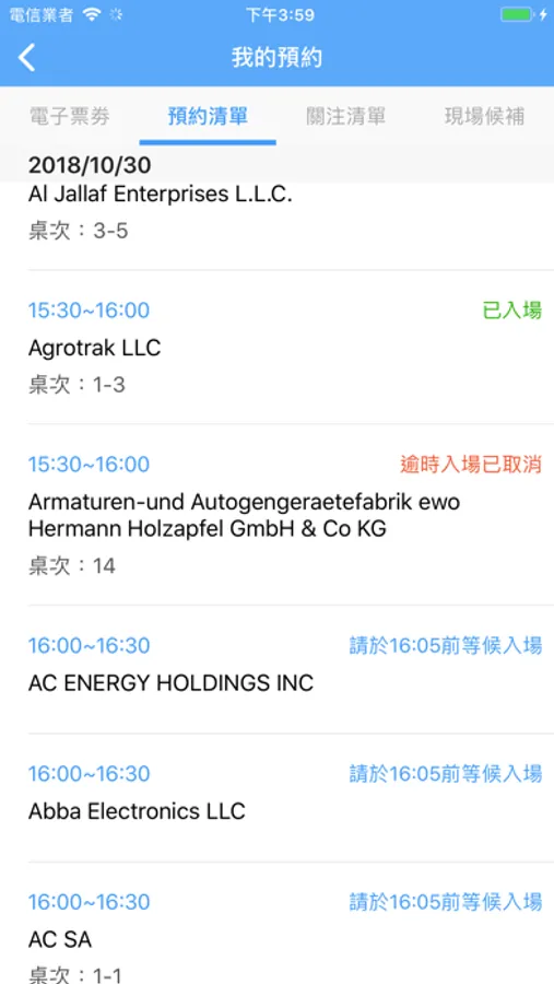 使用手機便能輕鬆快速的搶到現場候補資格,並提醒於時間內到洽談桌次報到。