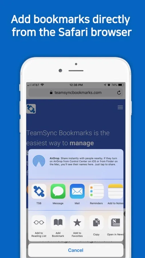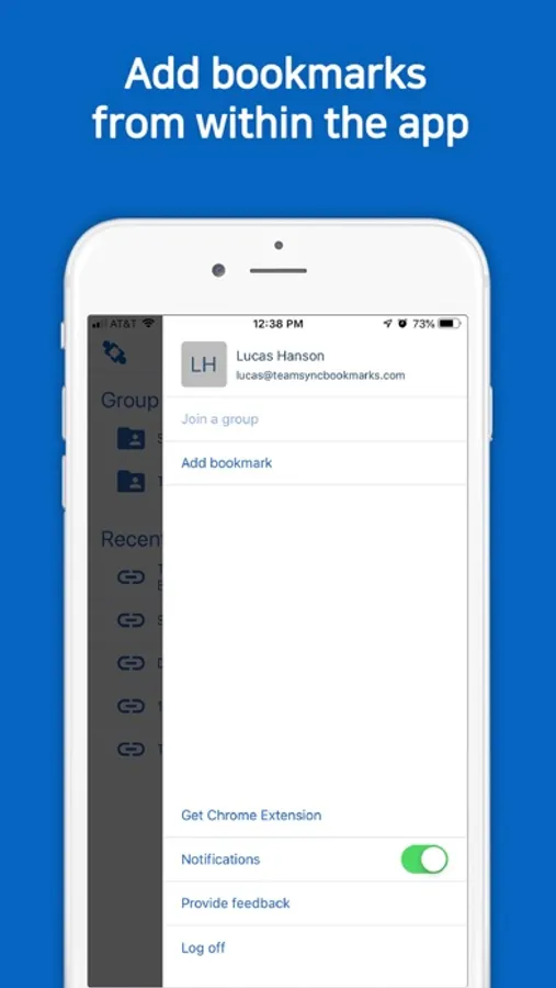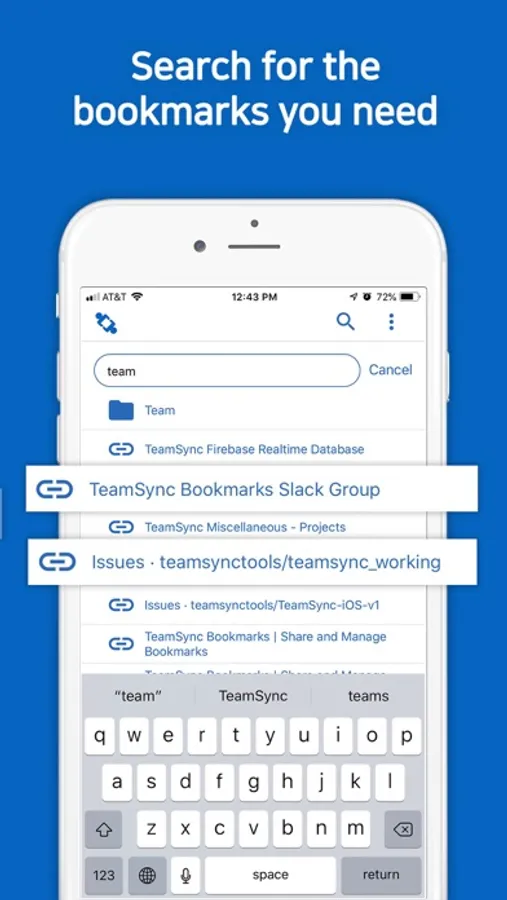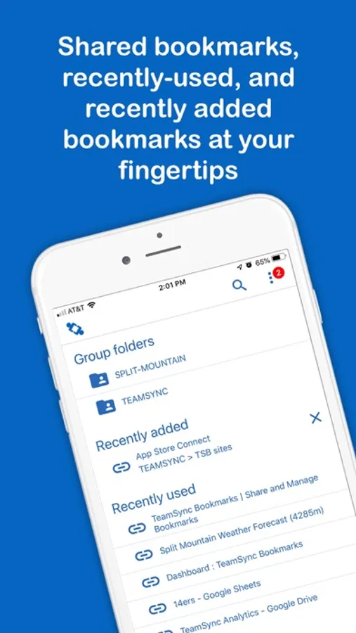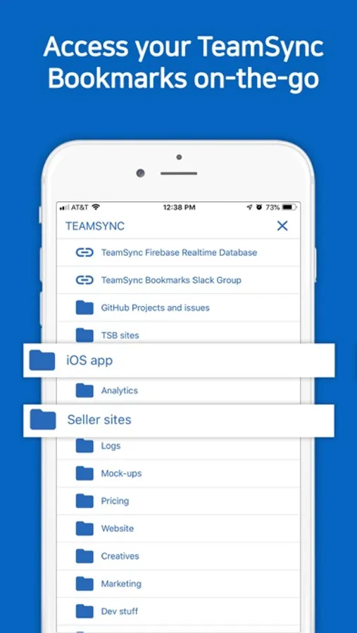 To use all TeamSync Bookmarks capabilities, please download our browser extension. The TSB Mobile app is for users who need to access their shared bookmarks on-the-go. It has the following features: