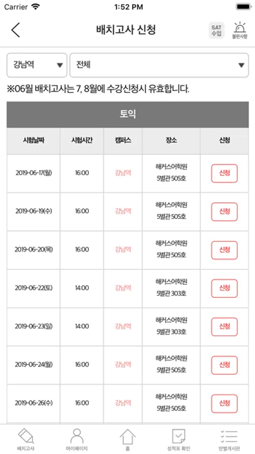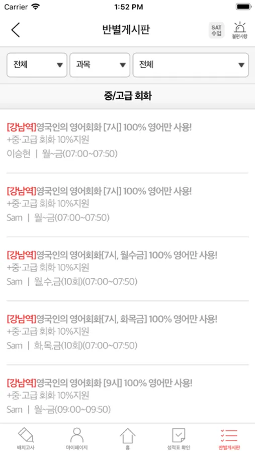 실력에 맞는 최적의 반 배정 - 맞춤형 강의 선택 시스템