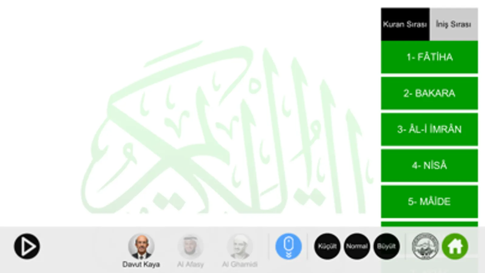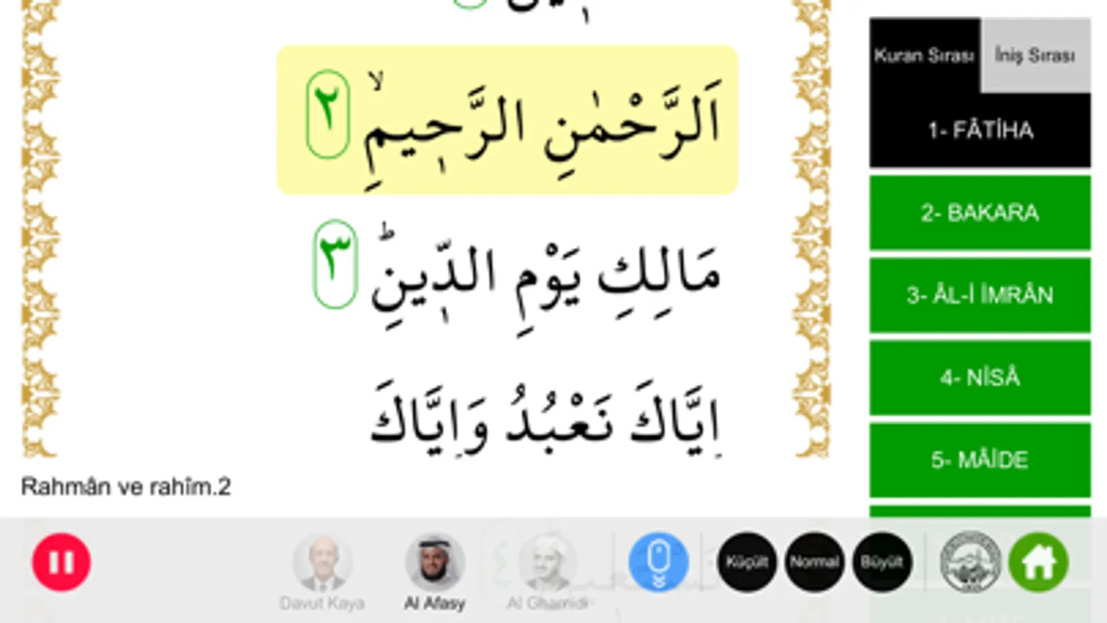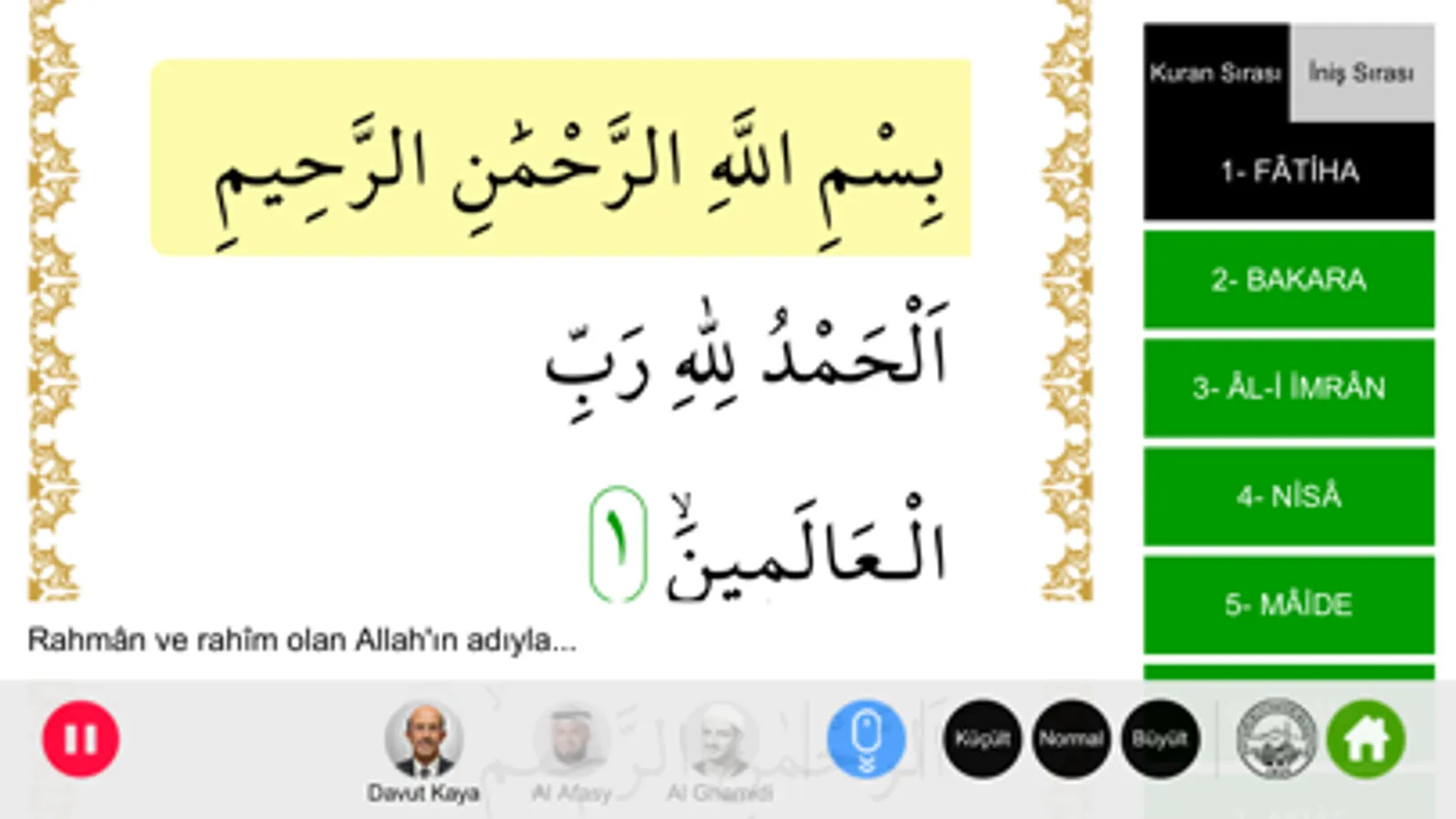 Sesli ve türkçe meali Kur'an-ı Kerim uygulaması.
