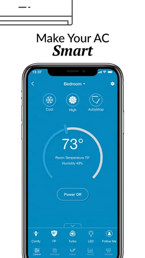 You can set weekly schedules for your air conditioners, monitor usage history, set air conditioning action in relation to your locations, see the air filter status of your AC and lot more. You can set intelligent temperature based triggers for your air conditioners by using the ‘Comfy’ feature under ‘My Rules’ section of the app. Comfy lets you set triggers to personalize the operation of your AC. It helps you automatically change your AC settings if room temperature goes above or falls below a pre-set value. It helps you reduce your energy bills with lot of convenience.