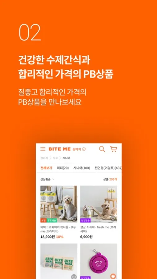 바잇미가 직접 만드는 건강한 간식부터, 까다롭게 선택한 최상의 용품들만 준비했어요!