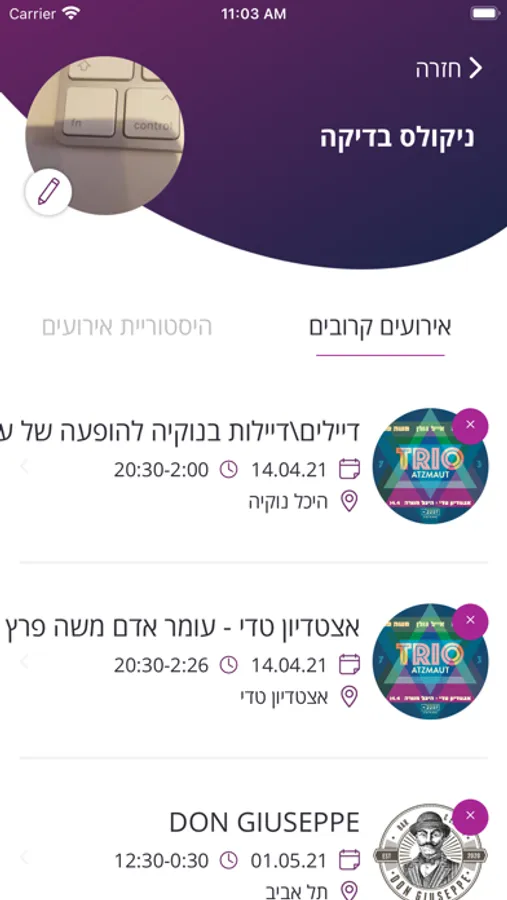 תוכלו לצפות באירועים עתידיים ובהיסטורית אירועים