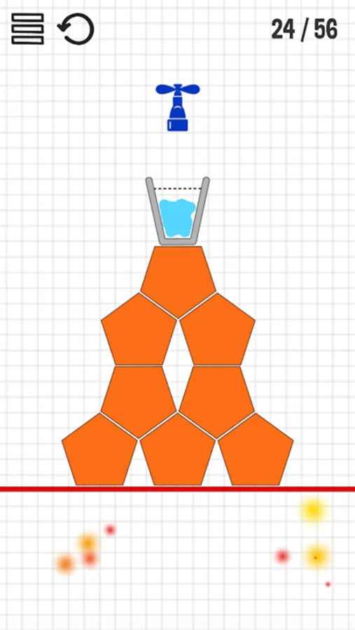 If you need help while completion of Happy Glass: Don't Spill game then use the hint, the game hints will actually solve the level for you by showing exactly where to draw and how to do it.