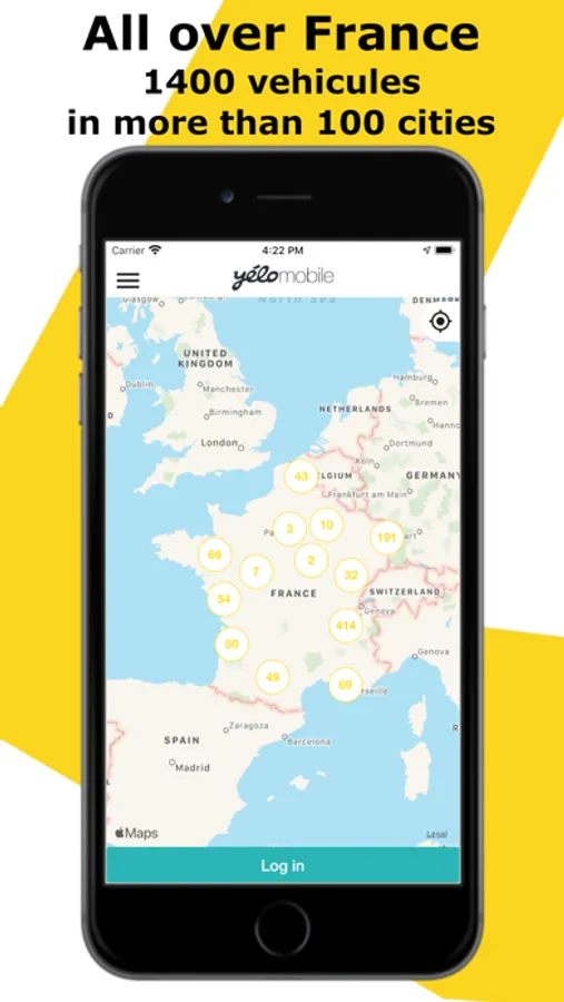 The Yélomobile service is managed by the Citiz network, bringing together car-sharing services present in more than 100 cities in France. Simply ask your Yélomobile agency for access to another Citiz town service and you will be able to access vehicles from all over France via the Yélomobile app.