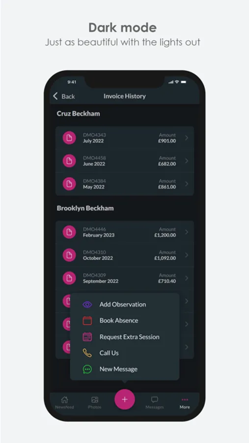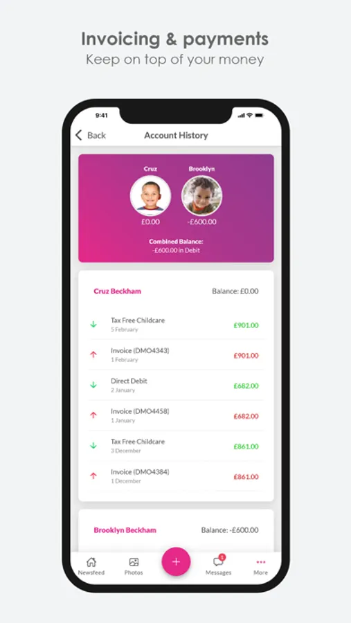 We also allow parents to view all their invoices to date and see all payments made to their children’s account. This also reduces any confusion of how much is outstanding on their account.