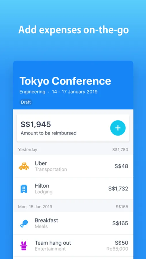 * Add your expenses on-the-go: Create expense reports and start adding expenses instantly.