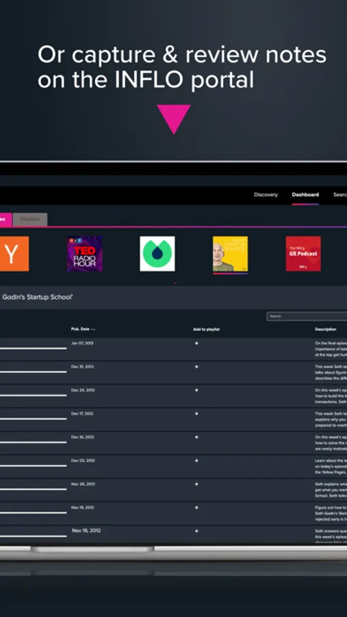 INFLO also has a desktop portal, which allows you to listen and capture notes from podcasts and create a personalized library of captured insights.