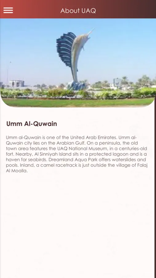 تم تطويره ليستخدم من قبل دائرة السياحة و الأثار لنشر المعلومات عنالمواقع السياحية والأثرية في إمارة أم القيوين