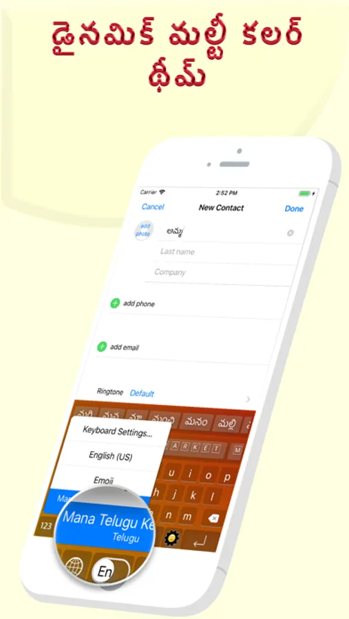 Now finally open any of the WhatsApp,Facebook,Email,Notes,Twitter, sms app, and long press the Globe icon from the default keyboard, now choose the Mana Telugu Keyboard Option.
