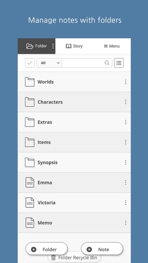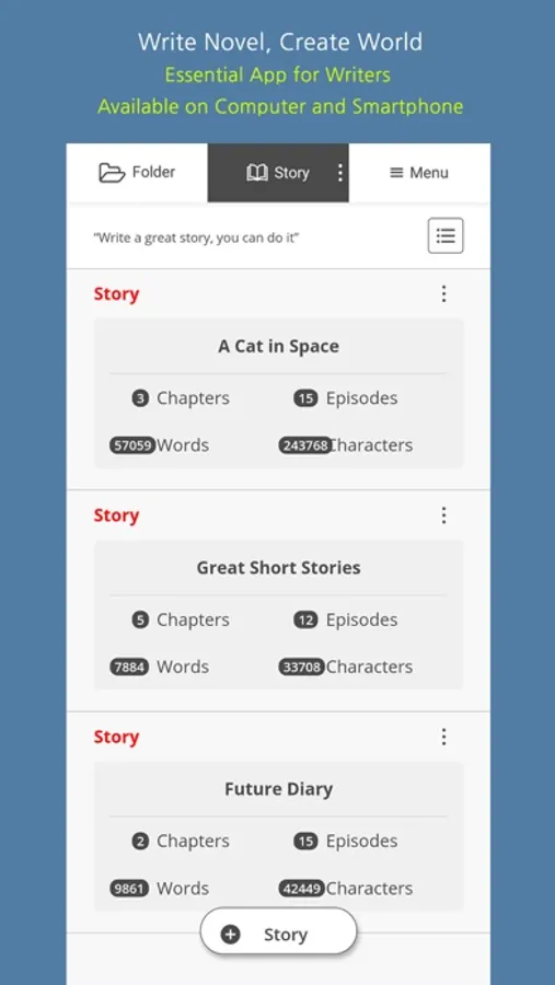 Simply take notes of your ideas and characters on the go with your smartphone.
