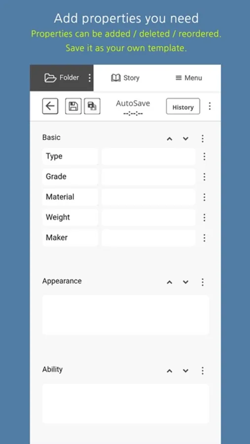 - Add properties, delete unwanted properties, and reorder to create your own notes.