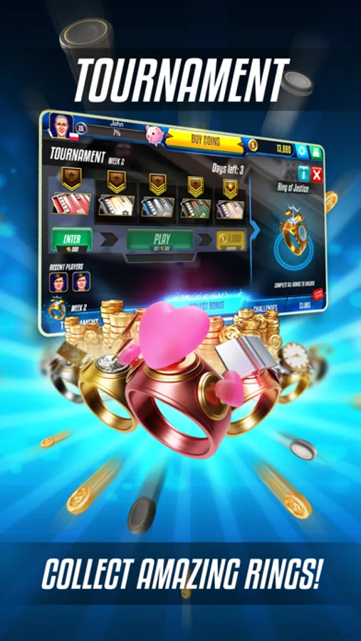 - Compete in weekly tournaments and events for amazing rings, coin rewards and bragging rights