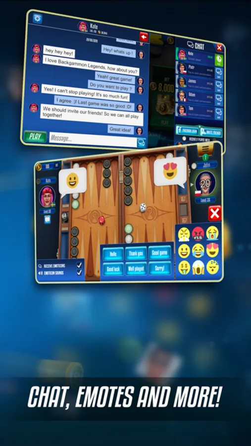 - Login with Facebook, always have access to your Backgammon Legends account, discover your friends.