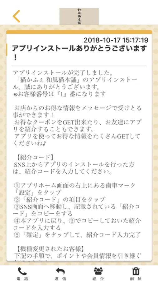 和風猫本舗のアプリをSNSを通じてお友達に紹介する事ができます。