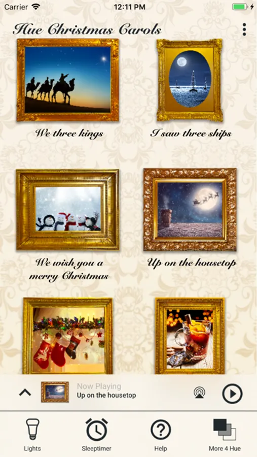 Hue Christmas Carols Advent* Calendar for Philips Hue gives you one beautiful Christmas carol every day in December until Christmas.
