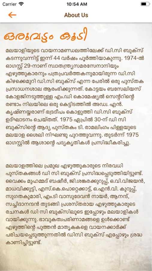 Prior to the birth of the modern Kerala, upto 1990, the stories, poetry, novel excerpts, biographies, life- memoirs and supplementary literature-reader texts of kerala Padavali have been compiled into this colossal collection, Oru Vattam Koodi: Ente Padaputhakangal