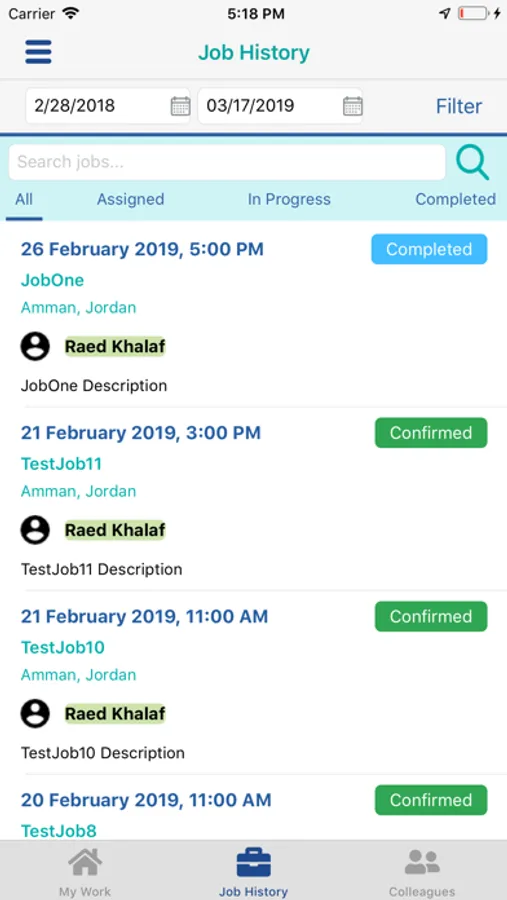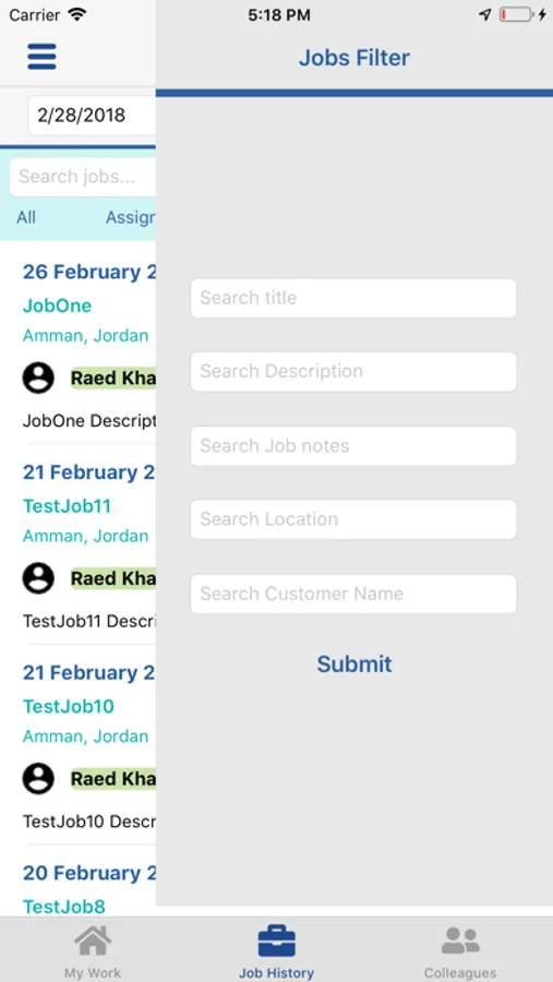• Service dispatcher can view technicians active location on map and view in progress routes to jobs and completed jobs