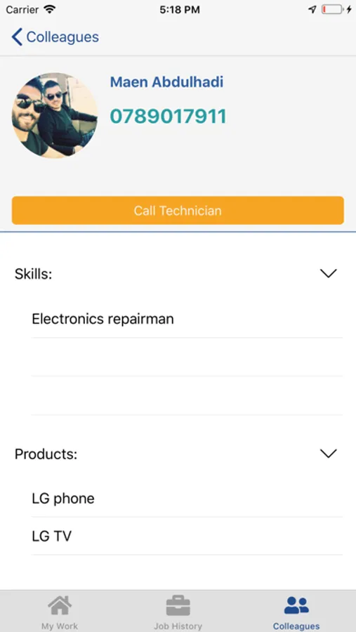 • Technician can get assistance finding other technicians who can provide help while at the customer job location.