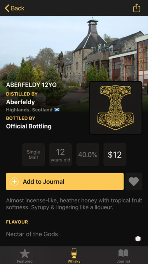 Save whiskies you want to try in your favourites list, log whiskies into your journal (tagged with emoji) and add keep track of your own personal tasting notes.