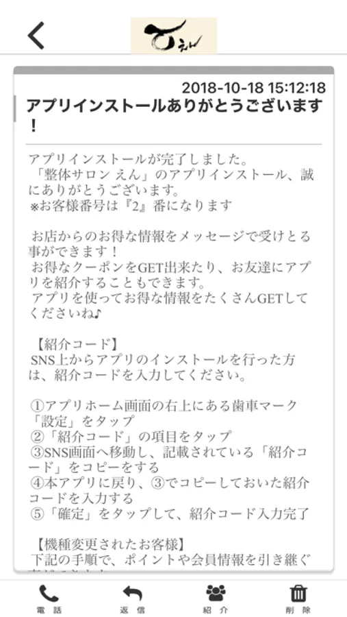 整体サロンえんのアプリをSNSを通じてお友達に紹介する事ができます。
